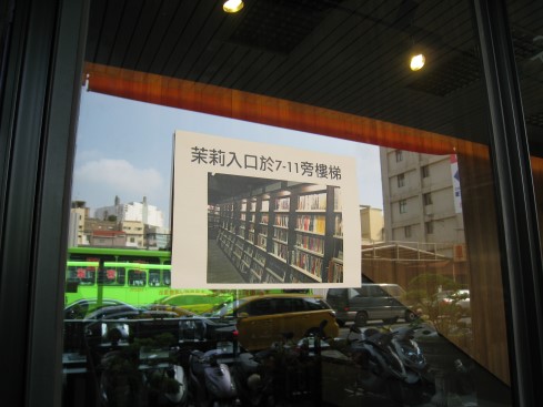 是的,茉莉書店的入口在誠品斜對面的7-11和飲料店的中間